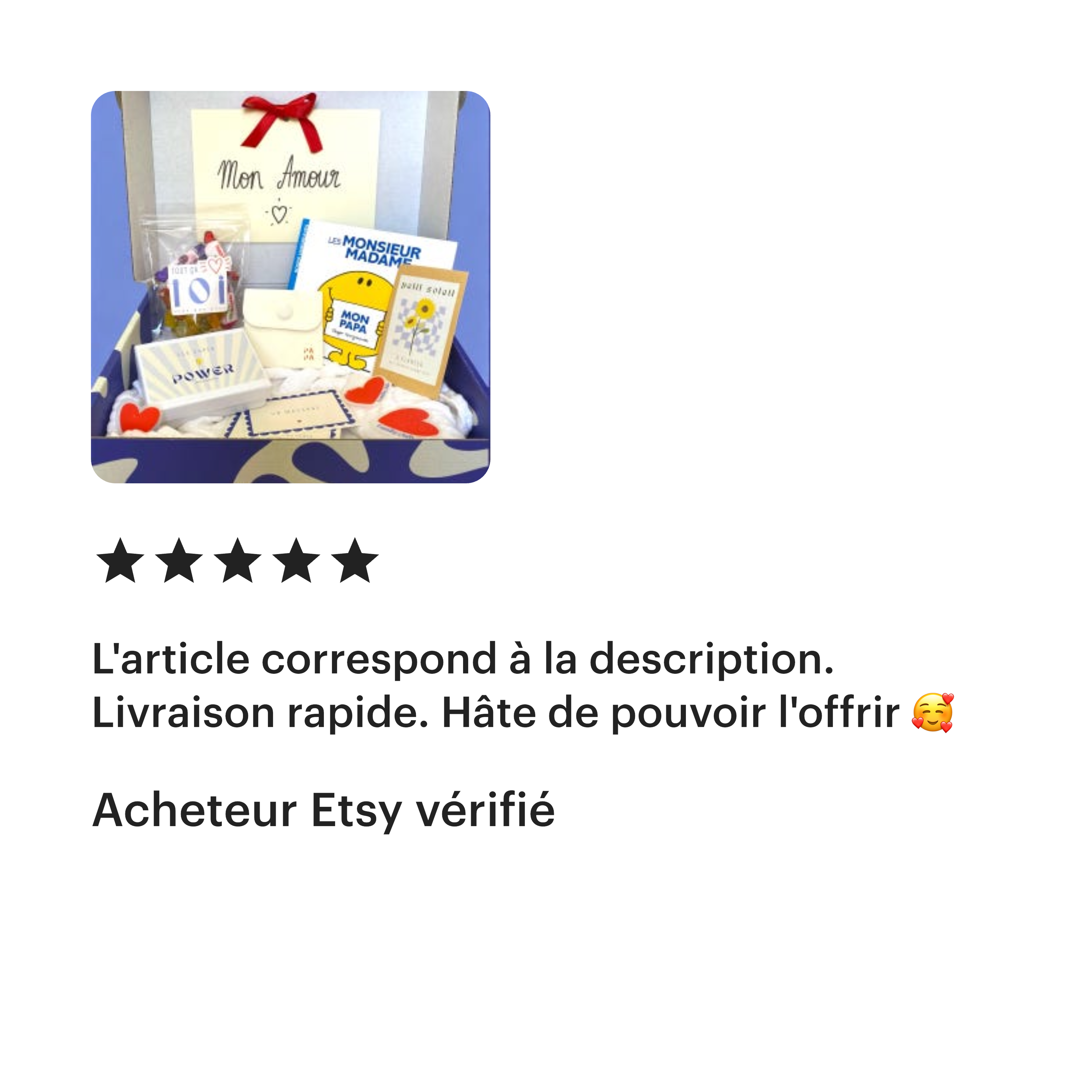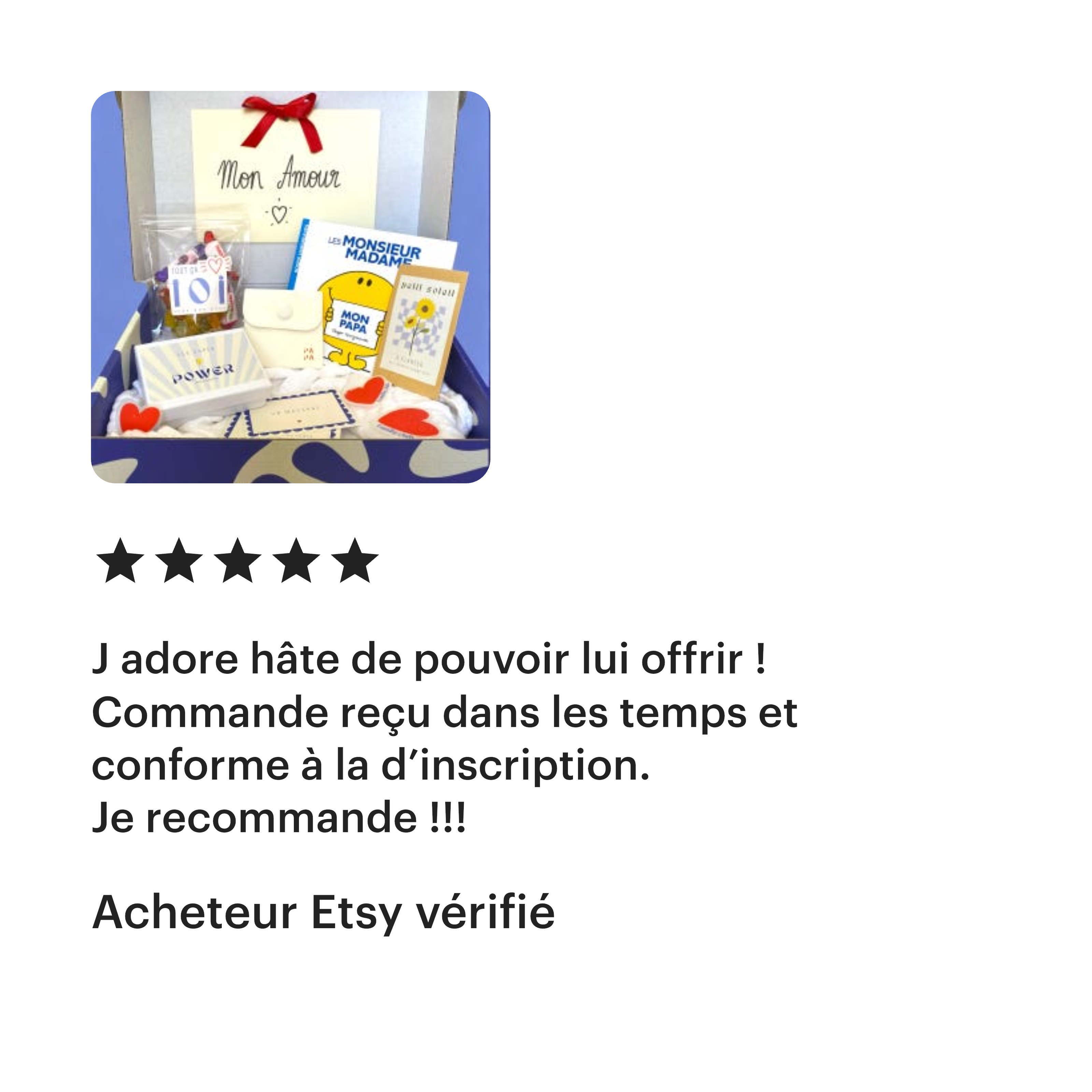 Nous préparons et expédions votre commande en 24–48h ouvrées, pour que ta Boîte à Papa arrive rapidement chez vous.